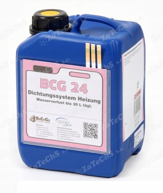 BCG 24 jest środkiem uszczelniającym zapobiegającym ubytkom wody w kotłach, instalacjach grzewczych, grzejnikach, ogrzewaniach podłogowych do 30 litrów na dobę. Środek ten uszczelnia instalacje wykonane z wszelkich występujących w handlu materiałów (miedź, tworzywa sztuczne, stal). Środek ten znajdując się w uszczelnianej instalacji krystalizuje się w połączeniu z powietrzem atmosferycznym w miejscu wycieku. Następuje samoistne, mechaniczne zasklepienie miejsca przecieku. Uszczelnienie jest trwałe i odporne na starzenie. Środek jest odporny na wysokie temperatury i ciśnienie. Nie uszkadza pomp i zaworów. Przed przystąpieniem do uszczelniania należy upewnić się czy w systemie grzewczym znajdują się środki antykorozyjne, przeciwzamarzeniowe lub sole. Jeżeli tak, to należy system opróżnić i przepłukać wodą, a następnie napełnić go i przystąpić do uszczelniania zgodnie z instrukcją. Należy upewnić się czy wszystkie filtry zostały usunięte, a zawory otwarte. Podczas uszczelniania samego kotła należy odciąć kocioł od pozostałej części instalacji. W instalacjach gdzie zastosowano elementy aluminiowe, po udanym uszczelnieniu (po ok. 4 tygodniach) powinno się instalację opróżnić, dokładnie przepłukać i następnie ponownie napełnić wodą.